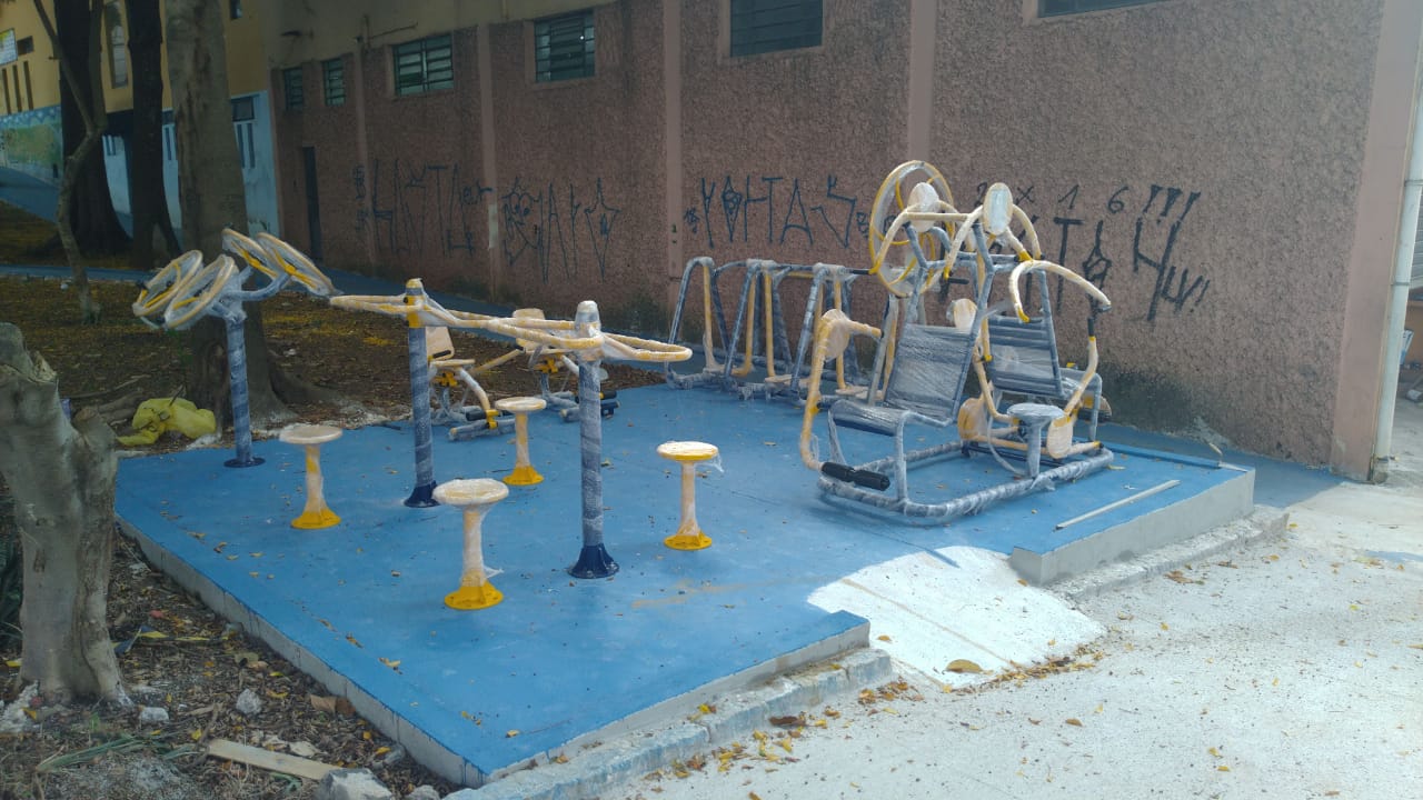 Reforma e adaptação de praça, através de acessibilidade, instalação de bancos e mesas de concreto, grama e equipamentos de ginástica para terceira idade.
